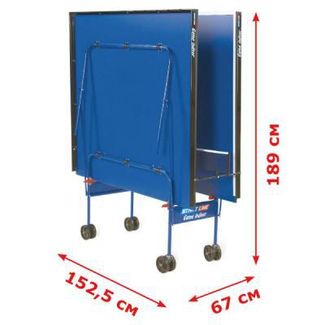 Цвет - комбинированный синий и черный Игровое поле - ЛДСП 16мм с меламиновым покрытием, производство Россия-Германия Кант - кромка ПВХ 0,45мм Металлический кант 40мм с полимерным покрытием Рама - стальная труба 25мм с полимерным покрытием. Самоблокирующийся механизм Транспортировочная система - Двойные транспортировочные ролики диаметром 125мм, одна сторона маневровая Сетка - встроенная Размер, международный стандарт - длина 274см, ширина 152,5см, высота 76см Размер в сложенном виде - длина 152,5см, ширина 67см, высота 189см Размер упаковки - длина 157см, ширина 10см, высота 141см Вес стола - 64 кг Вес в упаковке - 75кг Предоплата,Самовывоз, Доставка