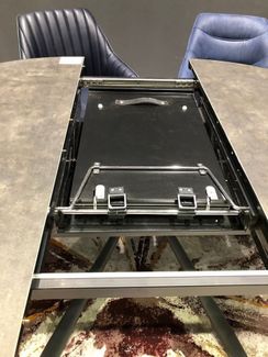 Стол VOLAND 120 Dark Grey Spanish Ceramic TL54 Раскладывается. Упакован в две коробки. Удлиняющая вставка с керамикой "бабочка" хранится под столешницей. Материал: