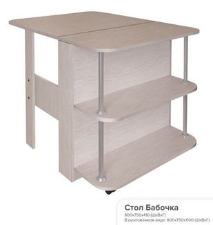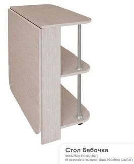Габариты (ШхВхГ): 800х750х410 мм В разложенном виде 800х1100 мм, высота 750 мм Материал: ЛДСП Цвет: дуб атланта Минимальная сумма заказа 1000 рублей. Возможен самовывоз.