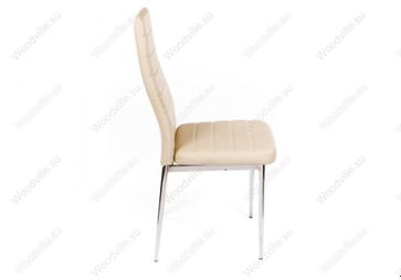 Стул DC2-001 отлично впишется в любой интерьер, благодаря своей универсальности. Модель устойчива. Сиденье и спинка - кожзам бежевого цвета. Ножки и каркас - хромированный металл. Материал: Каркас - хромированный металл Сиденье - кожзам Размеры (ШхВхГ), мм: 410 х 960 х 450