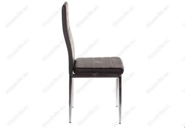 Стул DC2-001 отлично впишется в любой интерьер, благодаря своей универсальности. Модель устойчива. Сиденье и спинка - кожзам коричневого цвета. Ножки и каркас - хромированный металл. Материал: Каркас - хромированный металл Сиденье - кожзам Размеры (ШхВхГ), мм: 410 х 960 х 450