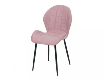 Сиденье обито микрофиброй розового цвета. Ножки стула - металл черного цвета.