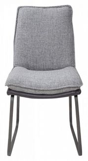 Обивка - сиденье в ткани серого цвета с темно-серой спинкой из экокожи. Каркас стула металлический темно-серого цвета.