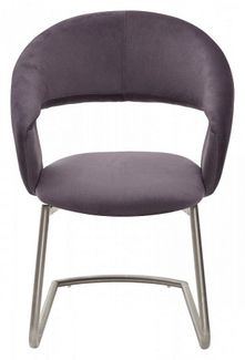 Обивка стула изготовлена из ткани серого цвета. Сзади стула проходит черная молния. В основании - брашированная сталь. Размеры (ШхВхГ), мм: 630х855х635