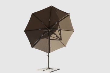 Размер купола (мм): 30003000 Зонт с боковой стойкой, механизмом наклона купола 6 уровней и системой поворота на 360 градусов. Алюминиевый каркас. Покрытие купола водоотталкивающее, устойчиво к выгоранию на солнце, с вентиляционным клапаном от сильного порывистого ветра. Легко открывать и закрывать со встроенными механизмами. Фиксация к полу, пластиковая база или утяжелителями (бетон). Бетонные плитки в количестве 4-ёх штук, размер (см): 5050*5 Ткань: Sunbrella, полиэстр 310г/м2 1 упаковка: 268х42х18 Объем: 0,2, Вес: 26 кг Минимальная сумма заказа 1000 рублей. Возможен самовывоз.