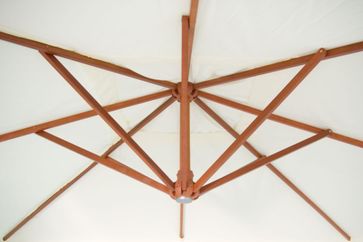 Зонт Корсика с равными сторонами имеет боковую алюминиевую опору 68 х 68 мм и 8 алюминиевых спиц 20 х 28 мм. Утяжелитель в комплект не входит. Достоинства данной модели: