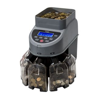 Cassida CoinMax – это скоростной счетчик-сортировщик, адаптированный для обработки российской монет. Прибор имеет 5 приемных карманов: 4 кармана служат для приема монет 1,2, 5, и 10 рублей. В пятый карман отсеиваются монеты мелких номиналов, которые исключаются из итога счета. Счетчик-сортировщик монет Cassida CoinMax может оснащаться стандартными (до 550 монет), или увеличенными ( до 1200 монет) приемными лотками. Помимо этого приемные лотки могут быть выполнены как из пластика, так и в виде тряпичных мешков. Увеличенная скорость счета и надежный механизм сортировщика, изготовленный из легированной стали, обеспечивают стабильную и производительную работу. Простая и удобная система максимально облегчает работу оператора. Сортировщик монет Cassida CoinMax имеет ряд конструктивных особенностей: Повышенную скорость сортировки, Надежный внутренний механизм, Пять приемных карманов, Оптимальный набор операционных режимов: счет с определением номинала, сортировка и фасовка по номиналу, режим суммирования, Два типа приемных лотков. None