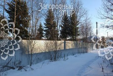 Находится на опушке леса (лесные деревья есть и на самом участке) . Огорожен забором из металлопрофиля, есть ворота и калитка. К участку подведено и оплачено эл-во 10 кВт, pустановлен счетчик.