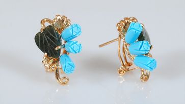Закажите серьги бирюза-нефрит 3 розы 1 лист в ряд у компании Lotus в Москве на портале Alloy: