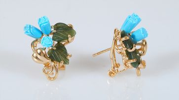 Закажите серьги бирюза-нефрит 3 розы 2 листа сердечко у компании Lotus в Москве на портале Alloy: