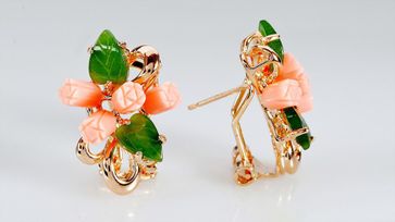 Закажите серьги коралл-нефрит 4 розы 3 дуги у компании Lotus в Москве на портале Alloy: