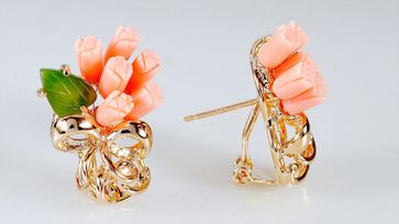 Закажите серьги коралл-нефрит 6 роз лист бант у компании Lotus в Москве на портале Alloy: