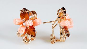 Закажите серьги коралл-тигровый глаз 4 розы 3 дуги у компании Lotus в Москве на портале Alloy:
