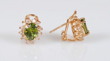 серьги перидот малый овал в цирконах