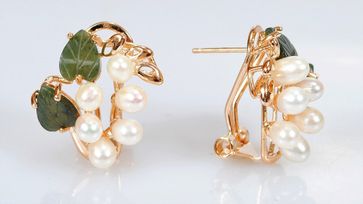 Закажите серьги жемчуг-нефрит 6 жемчужин 2 листа у компании Lotus в Москве на портале Alloy: