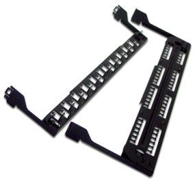 Поддерживающая скоба-органайзер применяется для фиксации кабелей, подводимых сзади к коммутационным и кроссовым панелям, обеспечивая требуемые радиусы изгиба, надежную фиксацию в процессе монтажа, снижение статических нагрузок на область контакта проводника кабеля и ножа IDC разъема патч-панели, вызываемых весом смонтированного кабеля.