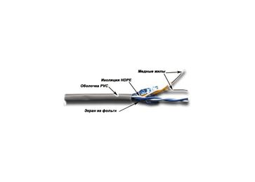 Расшифровка кабеля TWT-5EFTP2-GY: F - foiled (фольгированный, экранированный)TP - twisted pair - витая пара. Конструкции кабеля TWT-5EFTP2-GY: