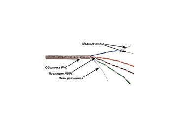 Расшифровка кабеля TWT-5EUTP: U - unfoiled (нефольгированный, неэкранированный).TP - twisted pair - витая пара. Конструкции кабеля TWT-5EUTP: