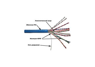 Расшифровка кабеля TWT-5EUTP10: U - unfoiled (нефольгированный, неэкранированный).TP - twisted pair - витая пара. Конструкции кабеля TWT-5EUTP10: