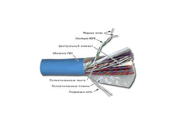 Расшифровка кабеля TWT-5EUTP50: U - unfoiled (нефольгированный, неэкранированный).TP - twisted pair - витая пара. Конструкции кабеля TWT-5EUTP50:
