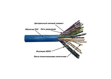 - Медные жилы.2. Разрывная нить.3. Изоляцию HDPE.4. Силовой элемент.5. Оболочка ПВХ.6. Полиэтиленовая пленка.7. Уплотнительный элемент.8. Оплеточные ленты.