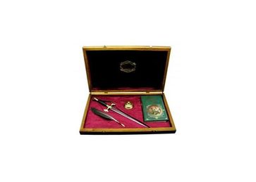 В состав гарнитура входит книга "Три мушкетера", стилет (выдаётся сертификат соответствия), латунная чернильница и перо с латунным наконечником. Гарнитур является одним из самых оригинальных подарков в нашем магазине. Футляр изготовлен из дерева. Внутри отделан бархатом и снабжён латунной табличкой для нанесения дарственной надписи. автор - Александр Дюма издатель None