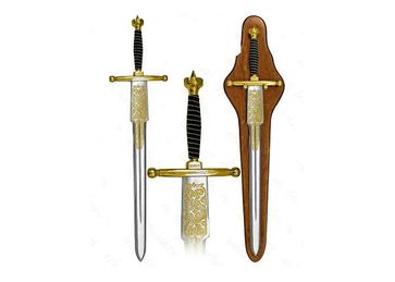 Испытанный образец являеться сувенирным изделием и не относиться к холодному оружию. Историческая справка: Меч защитников пограничной крепости Изборск, оборонявшихся от рыцарей Тевтонского ордена. Тогда была произнесена известная фраза из Евангелия Александром Невским: «Все, взявшие меч, мечом погибнут». Материалы: сталь, латунь. Так же Вы можете это изделие заказать в инкрустации, в золоте, серебре, драг.камнями бу None