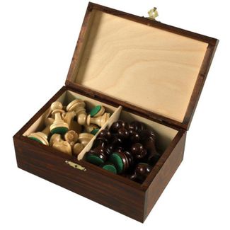 Шахматные фигуры «Стаунтон 5» – это тот случай, который отлично подходит, как для подарка себя, так и дорогому человеку. Все составные элементы изготовлены из дубовой древесины, поэтому об их долговечности и прочности можно не беспокоится. Для хранения и транспортировки комплекта предусмотрена деревянная коробочка из ичной породы. Внутри достаточно места для всех фигурок, и они надёжно запираются на маленький замочек. Снизу к фигуркам приклеена тканевая подложка, которая обеспечивает отсутствие царапин и сколов на игровой поверхности, даже после тысяч партий.