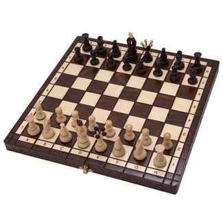 Шахматы Королевские производятся из цельного массива дерева. Это позволяет достичь наилучших показателей прочность и долговечности. Сверху наносится несколько слоев лакированного покрытия, что с одной стороны обеспечивает устойчивость к попаданию влаги, а с другой – улучшает внешний вид. Фигурки также деревянные и лакированные. Выполнены с учетом эргономики, чтобы удобно было держать 3 пальцами - специальные углубления препятствуют случайному выскальзыванию.