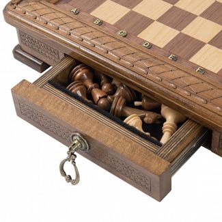 - Шахматы резные "Квадро" в ларце 50 по выгодной цене 17 990 р. руб.;