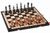 Игровое поле, в закрытом виде представляет собой специальный контейнер, который надёжно закрывается с помощью двух маленьких металлических замочка. Внутри контейнера в красивом бархатном ложементе разложены шахматные фигуры.