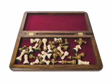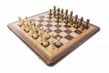 Набор шахмат «Турнирные-2» с инкрустацией отличается высоким качеством и мастерством исполнения. Это отличный вариант для подарка или пополнения личной коллекции настольных игр. Массивная доска, выполненная из древесины, декорирована в технике маркетри, благодаря которой можно насладиться игрой оттенков дерева драгоценной породы, использованного для инкрустации. Утяжеленные фигуры классического дизайна имеют антицарапающую подложку и лаковое покрытие.