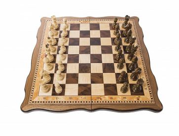 Инкрустированные в технике маркетри шахматы «Турнирные-3» - модель, способная своим дизайном и качеством исполнения покорить даже самого искушенного коллекционера этой древней настольной игры. Доска, сделанная из качественной древесины, довольно массивна, но надежна за счет вскрытия лаком и износостойкой металлической фурнитуры. Кроме того, она имеет оригинальный, довольно необычный для шахмат дизайн, который не может не привлечь к себе внимание. Фигуры имеют традиционный дизайн. На каждой из них имеется подложка, предотвращающая механическое повреждение доски при совершении хода.