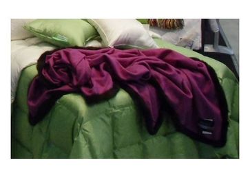 Изящный плед Eagle из натуральной шерсти мериноса Boston 129 с отделкой из меха норки по краю. Однотонный, благородного лилового цвета.