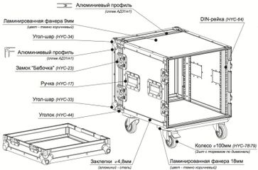 Рэковый кейс на колесах. Высота: 12U. Глубина: 480мм. Материалы: корпус - ламинированная фанера (9мм, 18мм), алюминиевый профиль (Сплав АД31m1), заклёпки алюминий-сталь. Оплата: Visa/Mastercard, б/н расчет.