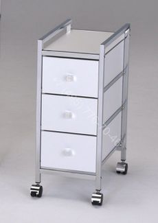 Металл/дерево; ДхШхВ мм: 235х395х570; Цвет: хром/белый; Вес: 5,6 кг Объем упаковки: 0,025 м3; полка, 3 ящика колеса None