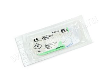 - W319 Шовный материал Этилон 4 0 45 см. синий обр.-реж. 19 мм. 3 8 Eticon, Бельгия США в каталоге Шовный материал в Москве;