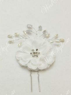 Закажите Тканевая шпилька с бусинами и кристаллами белая PIN205 у компании WedStyle.su - Первый свадебный Аутлет свадебных аксессуаров премиум-класса в Москве на портале Alloy: