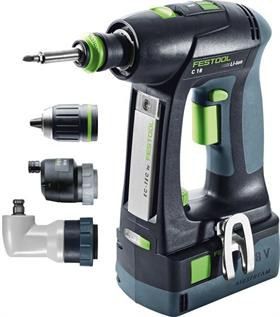 - Аккумуляторная дрель-шуруповерт Festool C 18 Li 5,2-Set по выгодной цене 54 400 р. руб.;