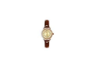 Водонепроницаемость: 3 АТМ (30 м); Категория: Женские золотые наручные часы; Стекло: минеральное с сапфировым напылением; Инкрустация (вставки): фианиты, диаметр 1,5 мм - 4 шт.; Браслет: натуральная кожа, ширина 6 мм; Корпус: красное золото 585; Вес драгметалла: 3,0 г; Механизм: Miyota, кварц; Размеры корпуса: диаметр 18,5 мм, высота 6 мм; Марка: НИКА ; Альтернативный артикул: 11238К31120