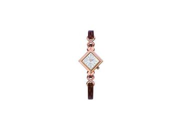 Водонепроницаемость: 3 АТМ (30 м); Категория: Женские золотые наручные часы; Стекло: минеральное с сапфировым напылением; Инкрустация (вставки): фианиты, диаметр 1,25 мм, 12 шт.; Браслет: натуральная кожа, ширина 6 мм; Корпус: красное золото 585; Вес драгметалла: 9,0 г; Механизм: Miyota, кварц; Размеры корпуса: 28*28 мм, высота 7,5 мм; Марка: НИКА