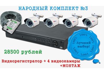 - Комплект видеонаблюдения на 4 камеры по выгодной цене 28 500 р. руб.;