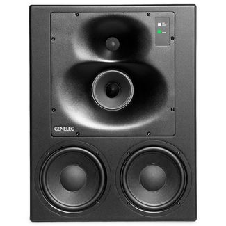 Профессиональная трехполосная акустическая система Genelec 1038CF относится к активным мониторам среднего поля действия и отличается от своих собратьев по линейке Pro Monitoring наличием двух басовых драйверов. Мониторы имеют сравнительно небольшую глубину. Их можно устанавливать на полки и стойки, монтировать на стены, но наиболее приоритетный вариант – это встраивание в стены. Спикеры Genelec 1038CF оптимизированы для работы в связке с сабвуфером.Закрытый корпус АС изготовлен из плит MDF и демпфирован с помощью распорок. В верхней части лицевой панели находится модуль, который включает в себя 1" твитер с купольной мембраной, выполненной из металла, и 5" СЧ-драйвер. Оба излучателя оснащены волноводами DCW, обеспечивающими правильный частотный баланс и точные дисперсные характеристики даже в сложном с точки зрения акустических свойств помещении. Благодаря DCW повышается чувствительность, а стереоэффект сохраняется даже в случае смещения точки прослушивания относительно оси излучения АС. При установке спикера в горизонтальное положение модуль нужно повернуть на 90 градусов (для этого необходимо снять 8 крепежных винтов). В нижнюю часть фасада встроена пара 8" длинноходных вуферов. В верхней части лицевой панели находятся два LED-индикатора. Один из них предупреждает о наличии питания, а второй указывает на клиппинг или срабатывание контура защиты.Модель Genelec 1038CF имеет на борту три усилителя, помещенные в единый съемный блок на антивибрационном подвесе и обеспечивающие мощность в 180 Вт для двух вуферов, в 120 Вт для СЧ-драйвера и в 120 Вт для твитера. При необходимости (например, при монтаже в стены) усилители можно снять и закрепить в рэковой стойке. Для достижения цельного звучания задействован активный кроссовер.Настройку тембров для ВЧ, СЧ и НЧ выполняют dip-переключатели, вынесенные в тыльную часть корпуса. Там же находятся dip-переключатели для работы с фильтрами Bass Roll-off и Bass Tilt. Имеется отдельный регулятор входной чувствительност