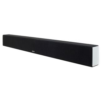 Пассивный саундбар Monitor Audio Soundbar 3 занимает топовое положение в соответствующей фирменной линейке и включает в себя три набора излучателей, предназначенных для озвучивания левого, правого и центрального канала. Модель предназначена для телевизоров с диагональю экрана в 60 дюймов и более. Ее главное отличие от младшего собрата — это более крупный корпус длиной в 1,3 метра и усиленный центральный канал. Низкопрофильный кабинет выполнен из MDF, имеет декоративные боковины, изготовленные из специально обработанного алюминия, и отличается превосходным демпфированием с помощью внутренних распорок.С целью повышения жесткости и развязки с фронтальной панелью динамики модели соединены с тыльной частью ее корпуса посредством специальных стягивающих болтов. Саундбар оснащен грилем с акустически прозрачной тканью. В центре его фасада расположен помещенный в волновод дюймовый твитер с позолоченной купольной мембраной, выполненной из материала C-CAM (магниево-алюминиевый сплав с внешним керамическим слоем). Такой ВЧ-излучатель обладает коротким временем отклика, впечатляющей жесткостью, обеспечивает высокую точность саунда и верхний предел диапазона частот в 30000 Гц. Слева и справа от твитера находятся 4-дюймовые СЧ/НЧ-драйверы с C-CAM-диффузорами, а также пассивные излучатели ABR с плоскими овальными диафрагмами, которые способствуют усилению полосы низких частот. Кпайние части фронтальной панели занимают наборы для левого и правого каналов, каждый из которых включает один такой твитер, СЧ/НЧ-динамик и ABR-излучатель.Саундбар Monitor Audio Soundbar 3 опирается на горизонтальные поверхности с помощью силиконовых ножек, а для его настенной установки можно использовать опционально доступный кронштейн или крепежные системы Sanus. Три винтовые клеммы для подключения AV-ресивера/усилителя находятся в специальной нише на тыльной стороне корпуса. При установке в больших по площади помещениях рекомендуется дополнить Monitor Audio Soundbar 3 сабвуфером из линеек Silver или Apex.