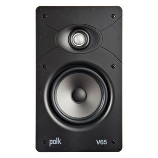 Встраиваемая акустическая система Polk Audio V65 обладает мощным, насыщенным звуком и может работать как в стереосистемах для качественного воспроизведения музыки, так и в домашнем кинотеатре. Колонка выполнена на шасси из ABS, которое устойчиво к механическим нагрузкам и не резонирует при высокой громкости звука. При правильном монтаже Polk Audio V65 практически незаметна в интерьере благодаря узкой рамке, а также плоской защитной сетке.Polk Audio V65 имеет двухполосную конфигурацию и оснащена фирменными излучателями, выполненными по запатентованной технологии Dynamic Balance. Она предусматривает оптимизацию методом компьютерного моделирования всех параметров электромагнитной системы динамиков, а также шасси и других механических узлов. Это обеспечивает радикальное снижение искажений звука, особенно при повышенной подводимой мощности, а также повышение чувствительности колонки в целом. Низкочастотный динамик в Polk Audio V65 имеет диаметр 6,5 дюймов и оснащен легким и жестким полипропиленовым диффузором на подвесе из бутиловой резины. Мощная магнитная система обеспечивает линейное перемещение диафрагмы с большой амплитудой, что позволяет получить существенное звуковое давление в комнате средних размеров, а также глубокие и проработанные басы. Твитер в Polk Audio V65 оснащен 1-дюмовым шелковым куполом и установлен на поворотном держателе, который позволяет сориентировать его в нужном направлении. Динамики подключены к разделительному фильтру, который выполнен из компонентов повышенной надежности по простой схеме, и обладает минимальными искажениями при стабильном показателе импеданса. Для подсоединения входного кабеля в акустической системе предусмотрена пара нажимных позолоченных клемм.Конструкция колонки Polk Audio V65 позволяет установить ее непосредственно в подготовленную нишу в стене, или использовать опциональную монтажную коробку PB LC65i. В базовом варианте АС имеет отделку белого цвета, однако при желании ее можно окрасить в любой другой цвет.Особенности в