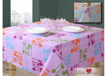 Полиэстер используется в различных сочетаниях, добавляя готовым изделиям прочность и обеспечивая антистатический эффект. Наиболее популярна смесь полиэстера и хлопка, благодаря полиэстеру изделие быстрее сохнет и не теряет форму. Такие скатерти прослужат Вам долгие годы.