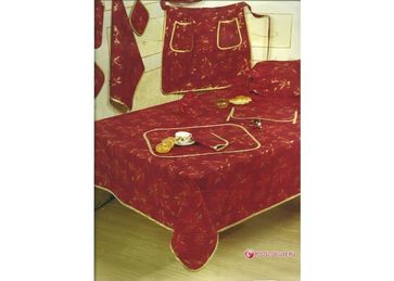 Хлопок можно назвать самой эстетически правильной тканью: он хорошо впитывает. Столовое белье из этой ткани легко гладится, при необходимости его можно стирать при температуре до 90С. Срок его службы выше, чем у льна, и в зависимости от частоты эксплуатации колеблется от трех месяцев до полутора лет. Скатерть из хлопка смотрится богато и эффектно. К минусам этой ткани можно отнести усадку. На скатертях длиной до 2 м усадка не заметна, а вот на изделиях большего размера из 100%-ного хлопка она достигает 10%.