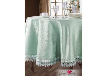 Комплект столового белья 7 предметов. Размер скатерти: круглая 180 см. Размер салфеток: 40х40 см. (4 шт.) Материал: Жаккард Отделка кружево