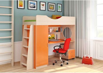 •Кровать-чердак, шкаф, стол, тумба, полка, лестница •Ортопедическое основание: нет •Подъемный механизм: нет •Ящик для белья: нет •Матрас: докупается отдельно None Есть доставка.