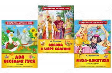 В серию Библиотека детского сада вошли произведения из рекомендованного списка литературы для дошкольников: от классических русских и зарубежных сказок до стихов современных детских поэтов. Серия подготовлена в соответствии с требованиями федерального государственного образовательного стандарта дошкольного образования. В комплекте 3 книги: К. Чуковский. Муха-цокотуха. Сказки и стихи . В сборнике: Муха-цокотуха , Федорино горе , Телефон , а также чудесные стихи. Иллюстрации С. Набутовского, И. Якимовой, И. Зуева. Два веселых гуся. Потешки . В книге собраны потешки в полном виде: Ладушки , Два веселых гуся , Тили-бом! , Сорока-белобока , Тень-тень-потетень и многие другие. Книгу иллюстрировал Владимир Петрович Коркин член Союза художников России, который оформил более 200 книг. А.С. Пушкин Сказка о царе Салтане . Иллюстрации созданы Александром Лебедевым, членом Московского Союза художников и Международной федерации художников. None Возможен самовывоз. Есть доставка.